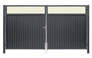 Модульные Ограждения стандарт для участков и домов в современных стилях. Без саморезов, цвет панелей двухсторонний, с декоративными панелями.