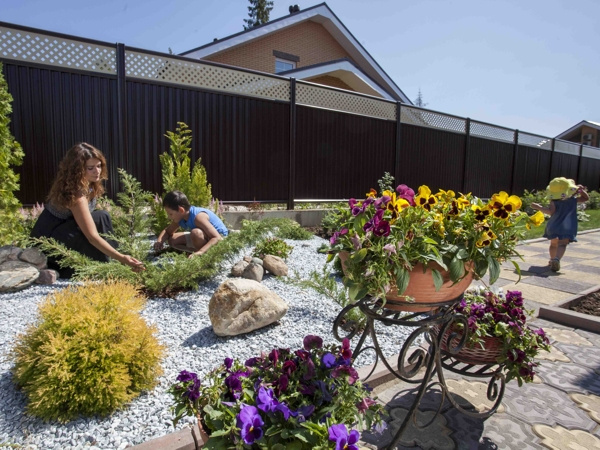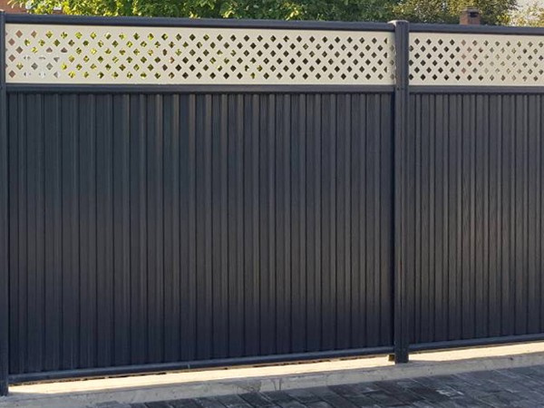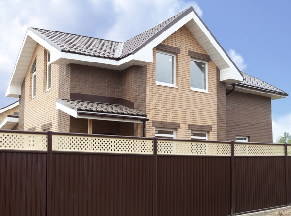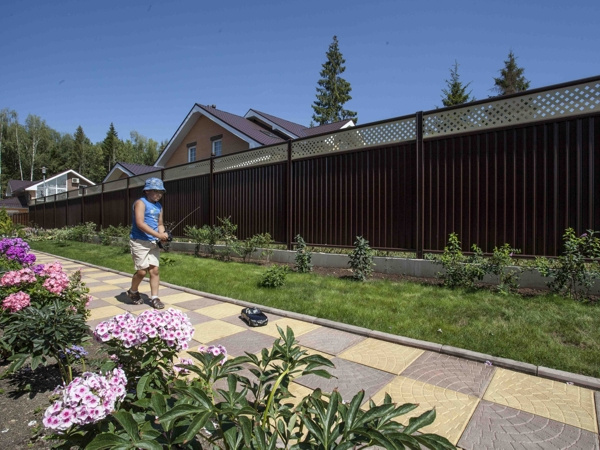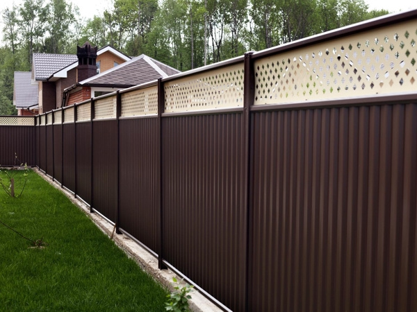 Модульные Ограждения стандарт для участков и домов в современных стилях. Без саморезов, цвет панелей двухсторонний, с декоративными панелями.