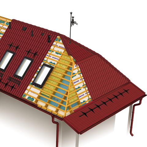 Гидроизоляционные пленки с ограниченной паропроницаемостью (18-40 г/ м2/24ч) используются в холодных кровлях для защиты чердачного пространства от конденсата. Монтируются обязательно с провисом 20 мм, обеспечивают пропускание наружу небольшого количества пара.