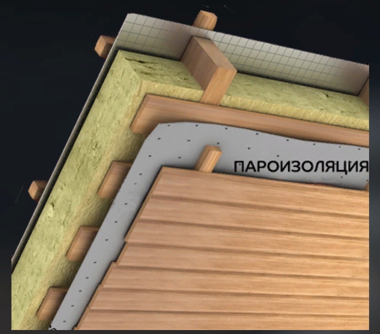 Пароизоляция устанавливается между потолком (в случае монтажа кровли) и утеплителем или между стеной(в случае устройства фасада) и утеплителем в плотную.