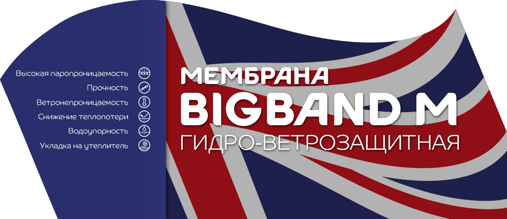 Мембрана гидро-ветрозащитная паропроницаемая BIGBAND M (1,6х45м)