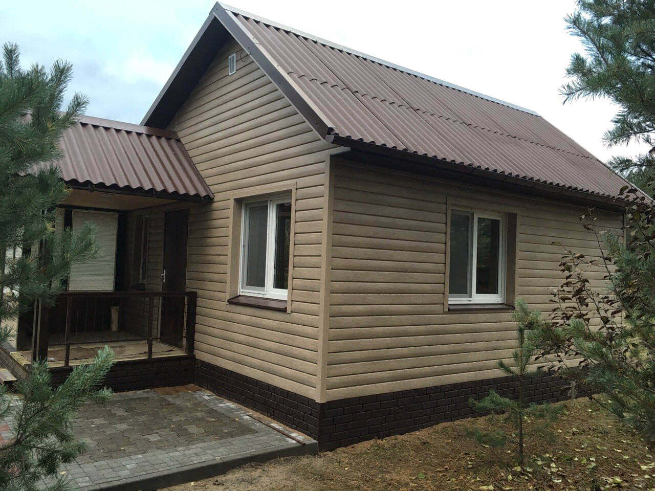 Сайдинг корабельный брус кофе с молоком + кирпич коричневый